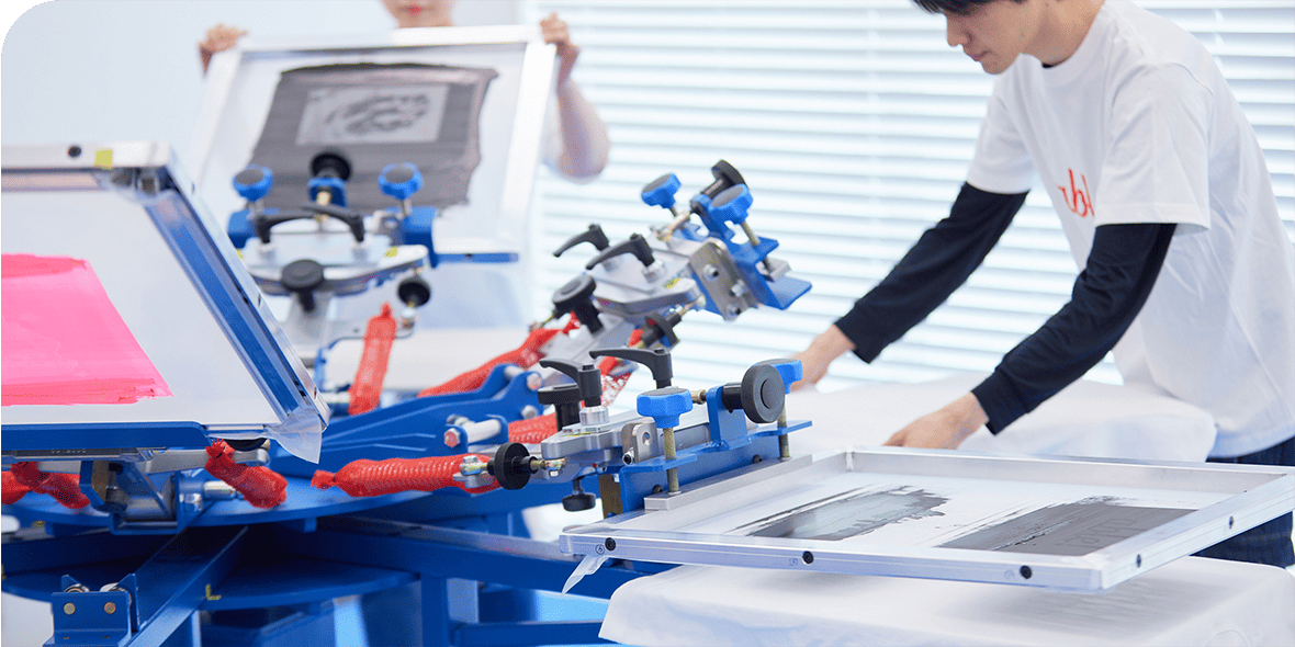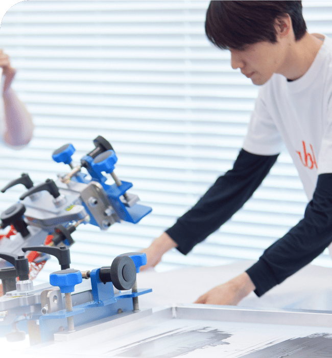 シルクスクリーン印刷を中心に、Tシャツをはじめとしたさまざまな衣類・雑貨への印刷を行っています。able! FACTORY内で製版から手がけており、オリジナルデザインによる製品の製造も可能です。また、ハンドメイドの雑貨類の製作も行っています。