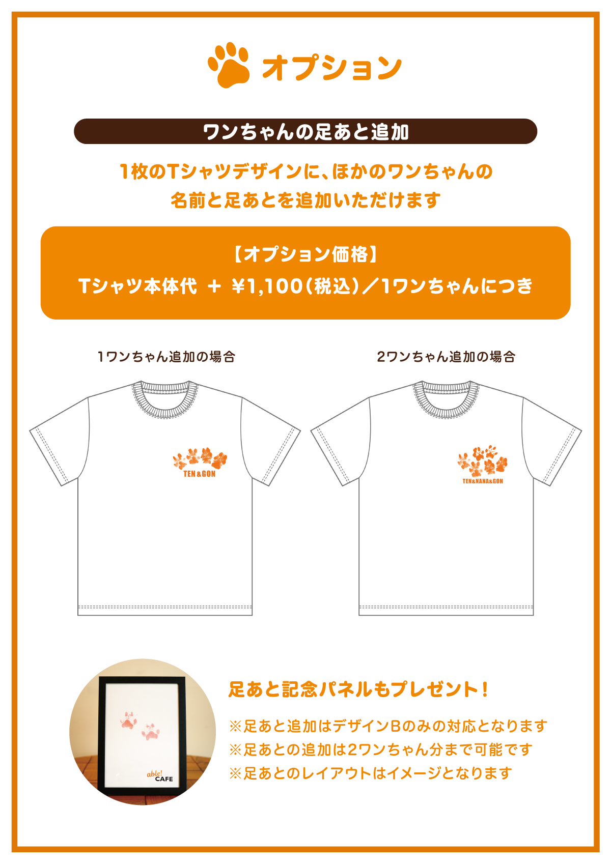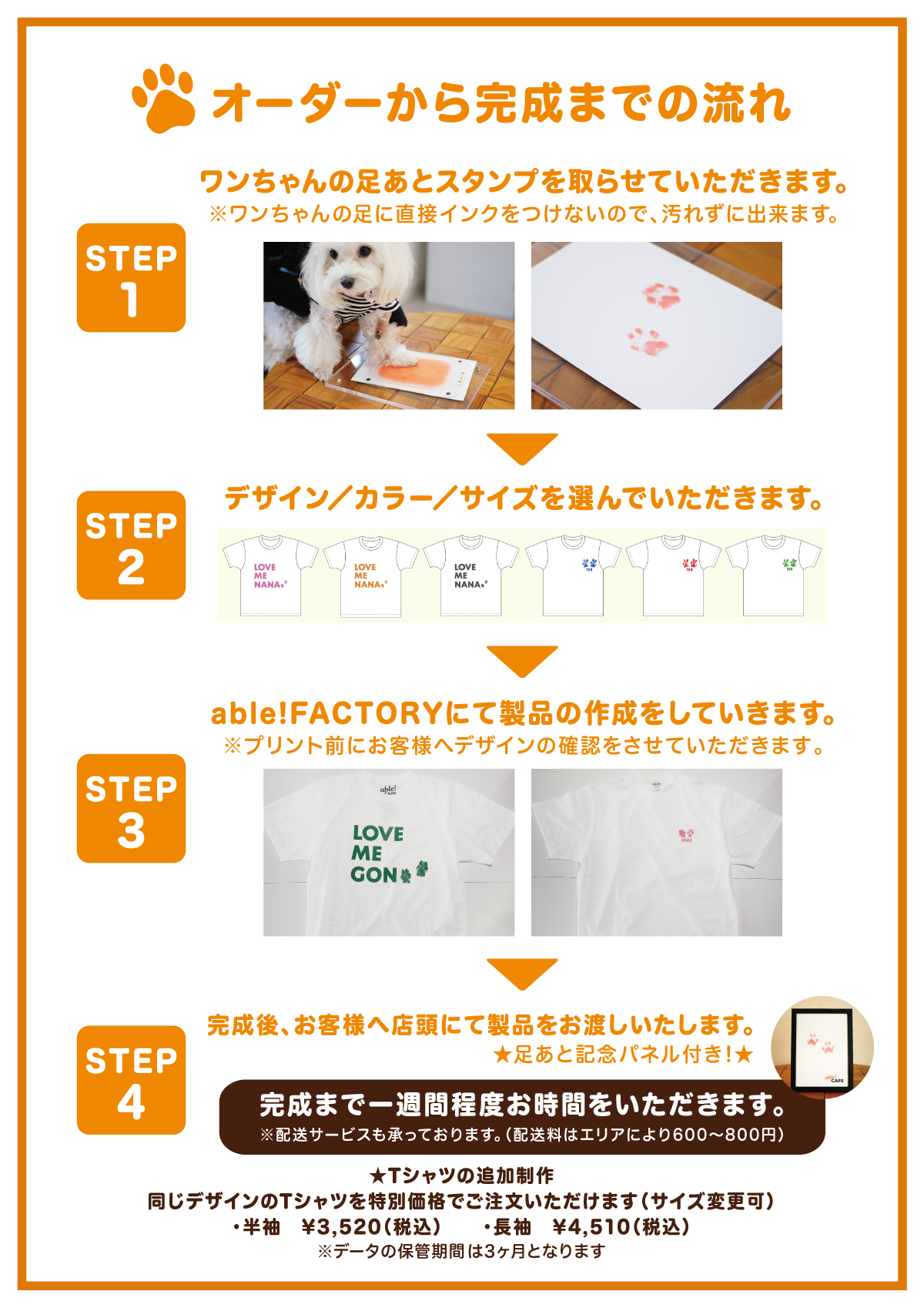 この度、able! CAFEにて「ワンちゃんの足あと入りオーダーメイドTシャツ」の販売を開始いたします。