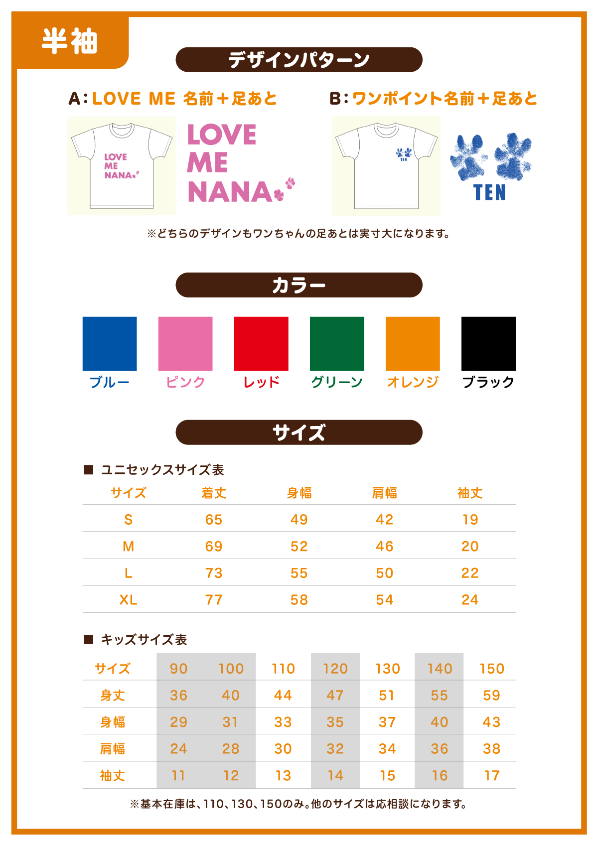 ワンちゃんの足あと入りオーダーメイドTシャツ(足あと記念パネル付き)