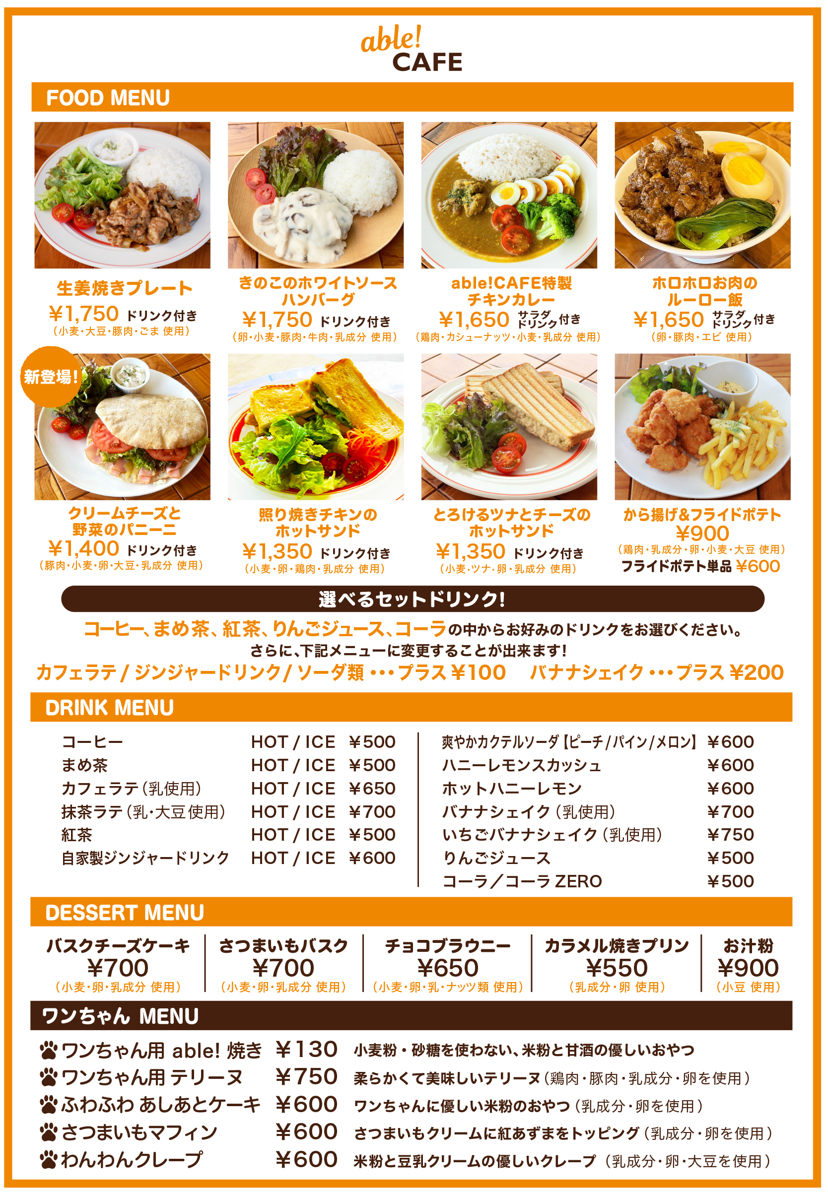 able! CAFE メニュー